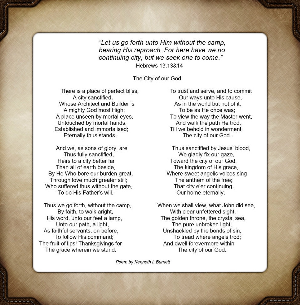 Hebrews chapter 13 (b) Poem by Kenneth I. Burnett Share this: Click to share on X (Opens in new window) X Click to share on Facebook (Opens in new window) Facebook Like Loading...