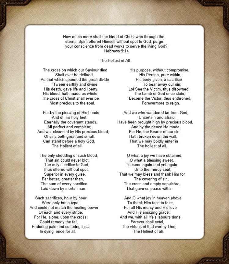 Hebrews chapter 9 (a) Poem by Kenneth I. Burnett Share this: Click to share on X (Opens in new window) X Click to share on Facebook (Opens in new window) Facebook Like Loading...