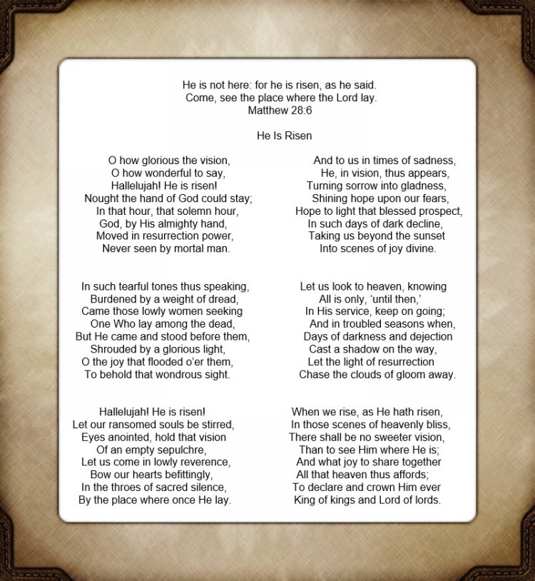 Matthew chapter 28 (a) Poem by Kenneth I. Burnett Share this: Click to share on X (Opens in new window) X Click to share on Facebook (Opens in new window) Facebook Like Loading...