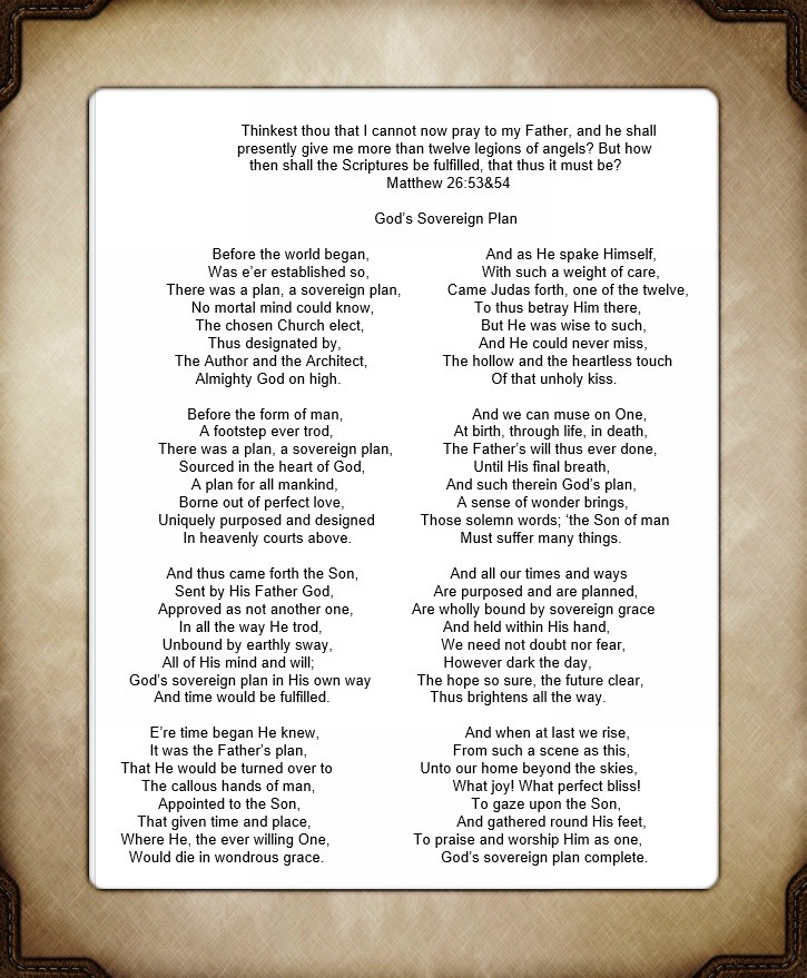 Matthew chapter 26 (d) Poem by Kenneth I. Burnett Share this: Click to share on X (Opens in new window) X Click to share on Facebook (Opens in new window) Facebook Like Loading...