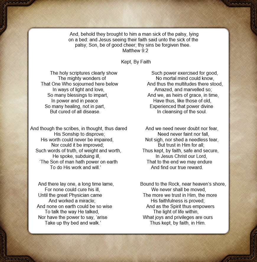 Matthew chapter 9 (a) Poem by Kenneth I. Burnett Share this: Click to share on X (Opens in new window) X Click to share on Facebook (Opens in new window) Facebook Like Loading...